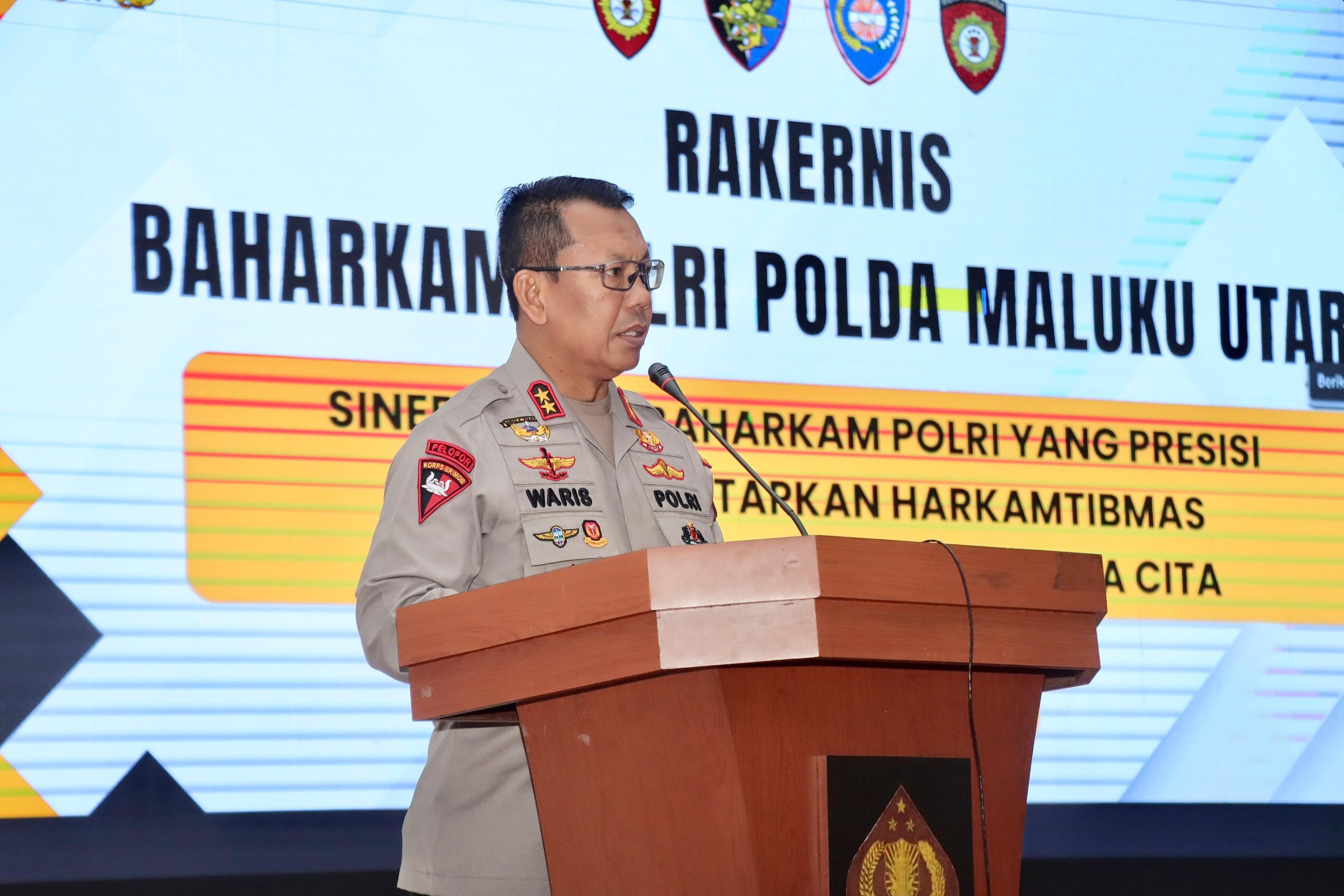 Rakernis yang mengusung tema “Sinergitas Baharkam Polri yang Presisi Guna Memantapkan Harkamtibmas dalam Rangka Mendukung Asta Cita” ini turut dihadiri Wakapolda Maluku Utara Brigjen Pol. Stephen M. Napiun, para pejabat utama Polda, serta peserta dari berbagai satuan fungsi operasional.
