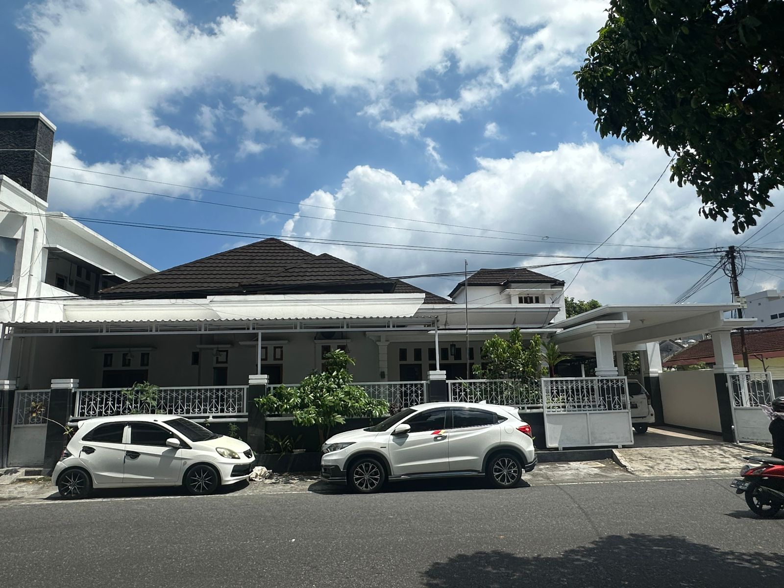 Rumah dua lantai berdesain modern minimalis dengan dominasi cat putih itu tampak mencolok di kawasan permukiman padat.