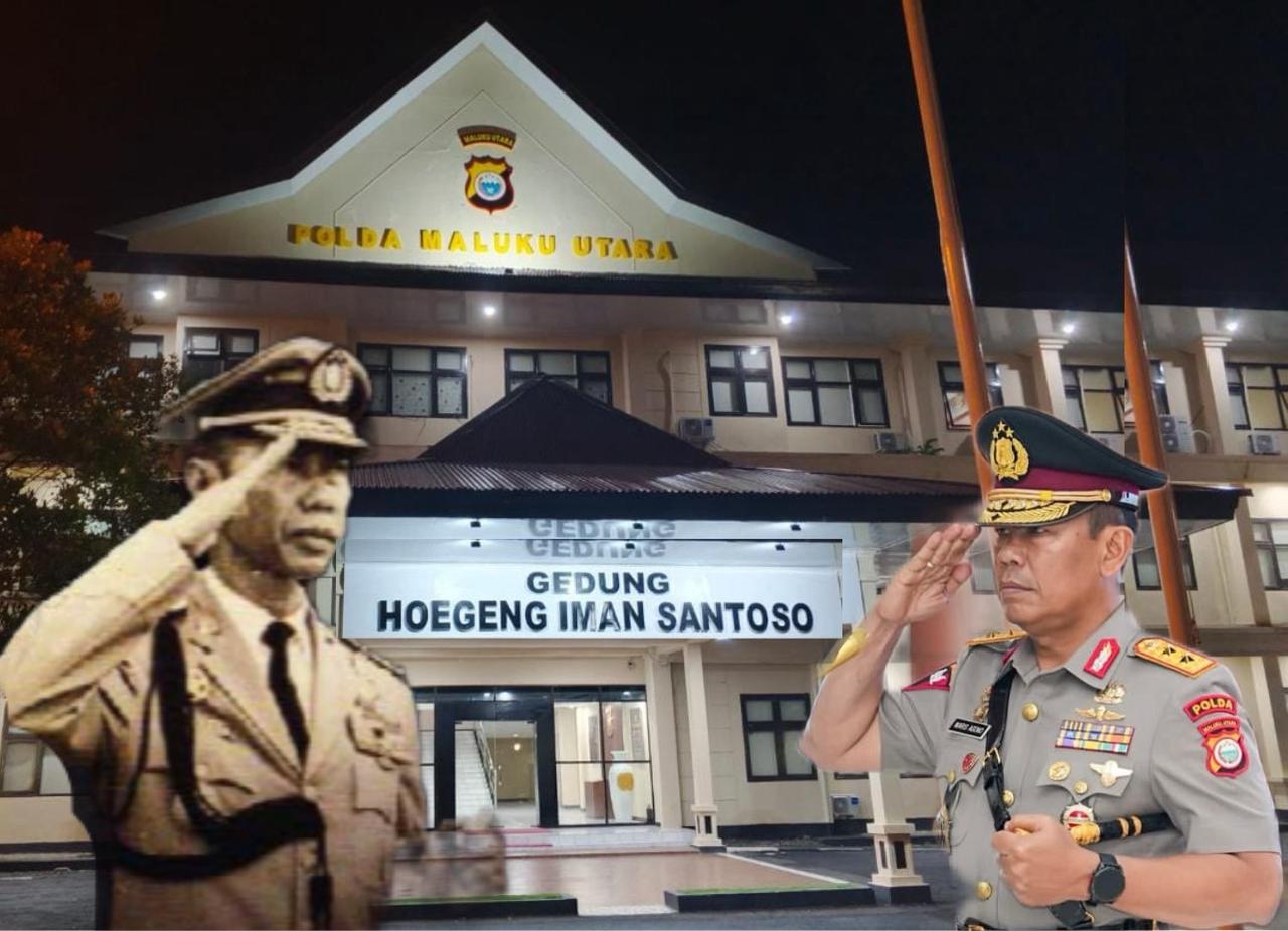 Kapolda Maluku Utara, Waris Agono, menamai gedung utama di lingkungan Polda Maluku Utara dengan nama “Gedung Hoegeng Iman Santoso” sebagai simbol komitmen terhadap nilai kejujuran dan pengabdian kepada rakyat.