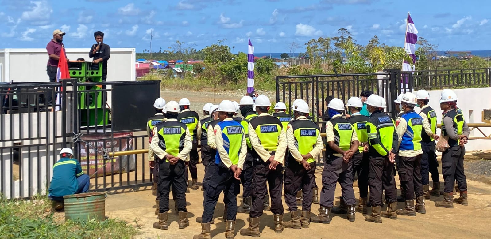 Dalam aksi yang berlangsung di kawasan operasional perusahaan, massa menutup akses keluar masuk kendaraan perusahaan dan menuntut penghentian seluruh aktivitas di atas lahan sengketa hingga ada penyelesaian ganti rugi yang dianggap adil.