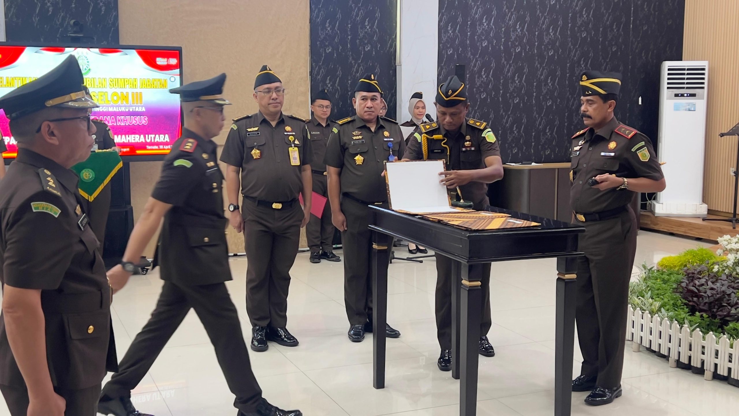 TERNATE – Kepala Kejaksaan Tinggi (Kajati) Maluku Utara, Sufari, memimpin upacara serah terima jabatan (sertijab) Asisten Tindak Pidana Khusus (Aspidsus) dan Kepala Kejaksaan Negeri (Kajari) Halmahera Utara.Kegiatan tersebut berlangsung di Aula Falalamo Kejati Malut, Selasa (28/4/2026).